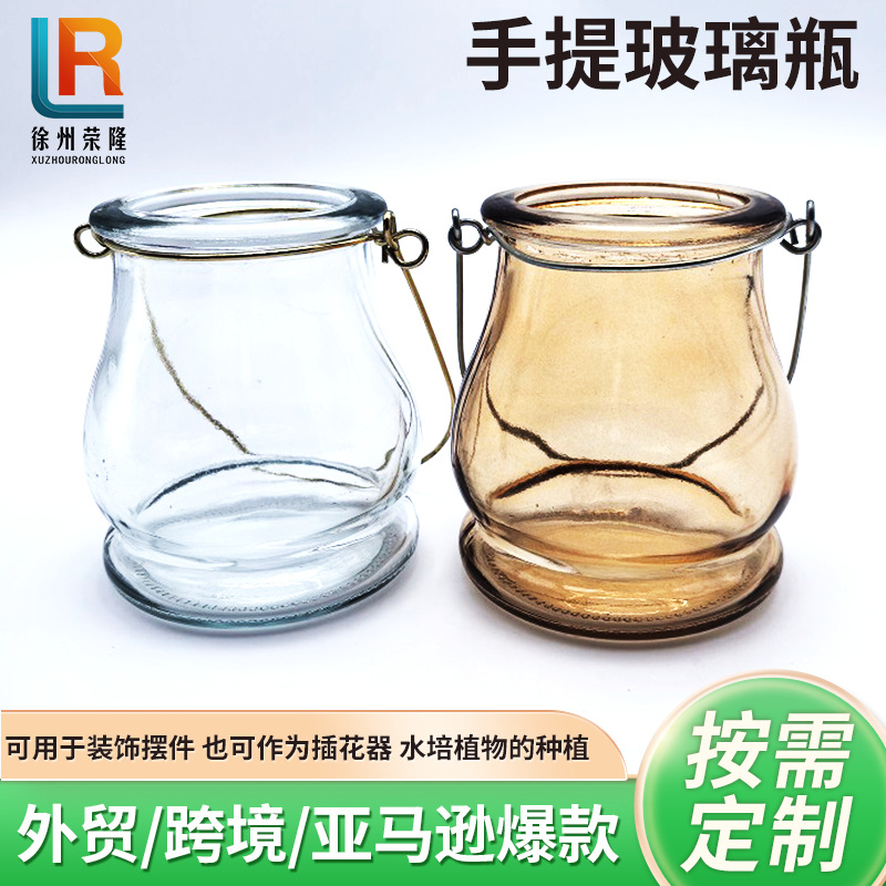 ハンドル付き透明ガラス燭台、吊り下げガラスカップ、フラワーアレンジメント、ガラス水耕花瓶、リビングルームフラワーアレンジメント装飾品