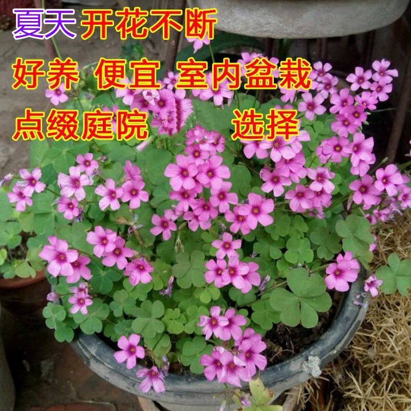 中庭の被覆植物、赤い花のシュガーポテトの苗、赤い花の草、紫の赤いクローバーの苗、幸運の草の多年生の根塊