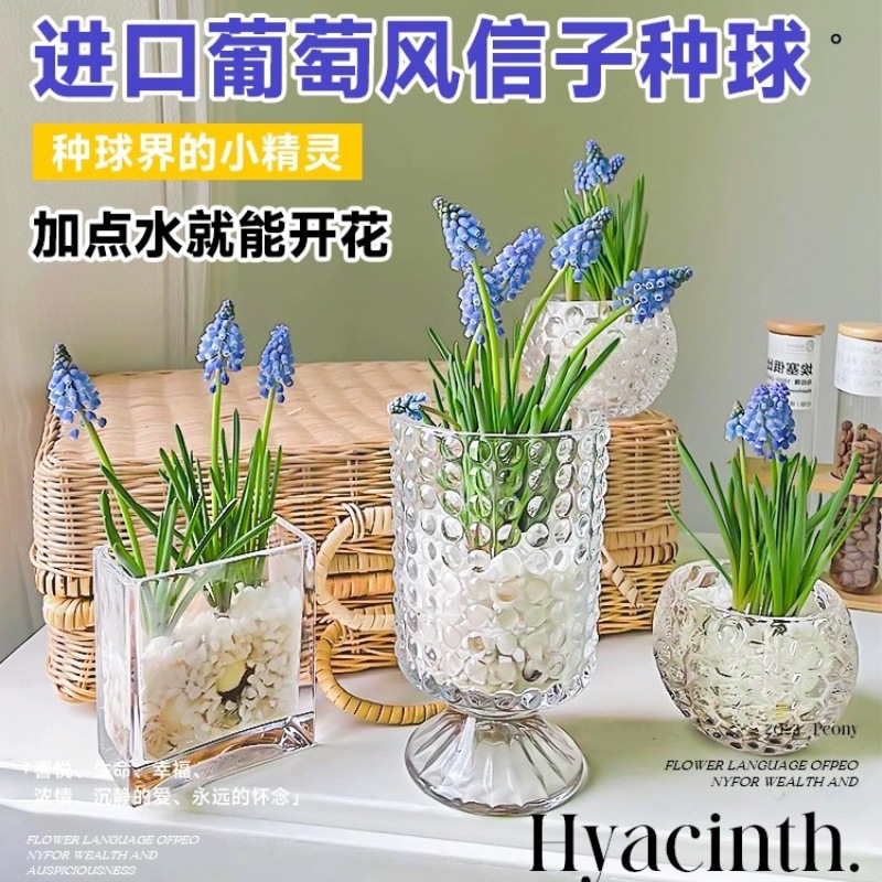 輸入のグレープヒヤシンス球根、育てやすい、屋内外、ベランダ、鉢植え、観葉植物、水耕栽培、大球