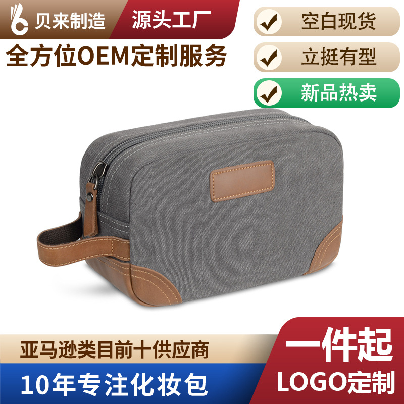 クロスボーダーシンプルキャンバスメンズ洗面バッグ手持ち高级感大容量化粧品収纳バッグ旅行ポーチ