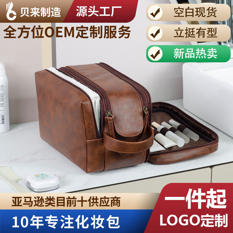 新品干湿分离皮膜洗面バッグメンズ出张旅行洗面用品収纳バッグ高级感化粧バッグ