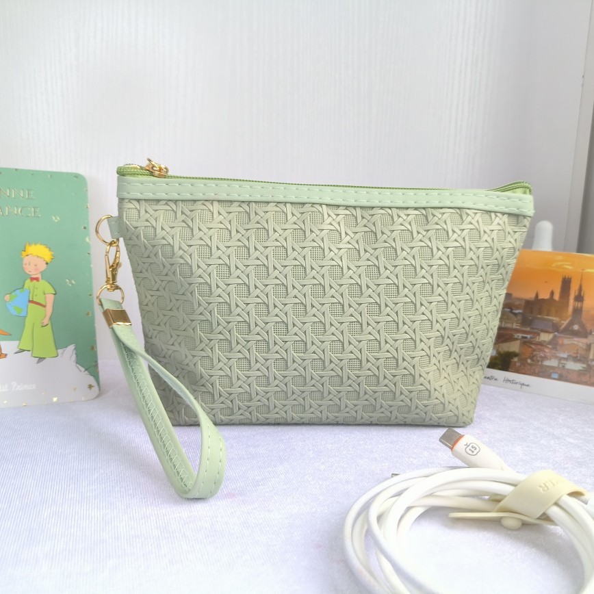 国境を越えた人気の織り模様の化粧品バッグ、大容量のPUトイレタリー収納バッグ、旅行用ポータブル多機能ハンドバッグ