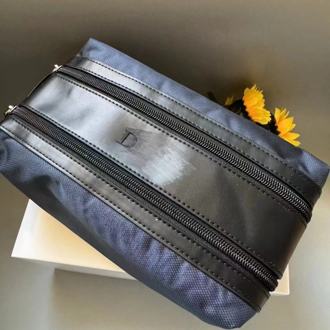 D家の新型の荒野の青い男性の化粧バッグの大きい空間は多くダブルファスナーの洗面バッグに属しています。