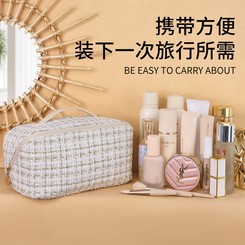 手持ち枕化粧バッグ新型高級軽豪華金糸格女性大容量携帯ins小香風化粧バッグ