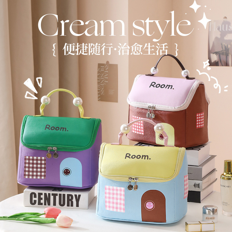 かわいいハウス化粧品バッグ女性の大容量ポータブル収納袋旅行ポータブル化粧品パーティション肥厚収納袋