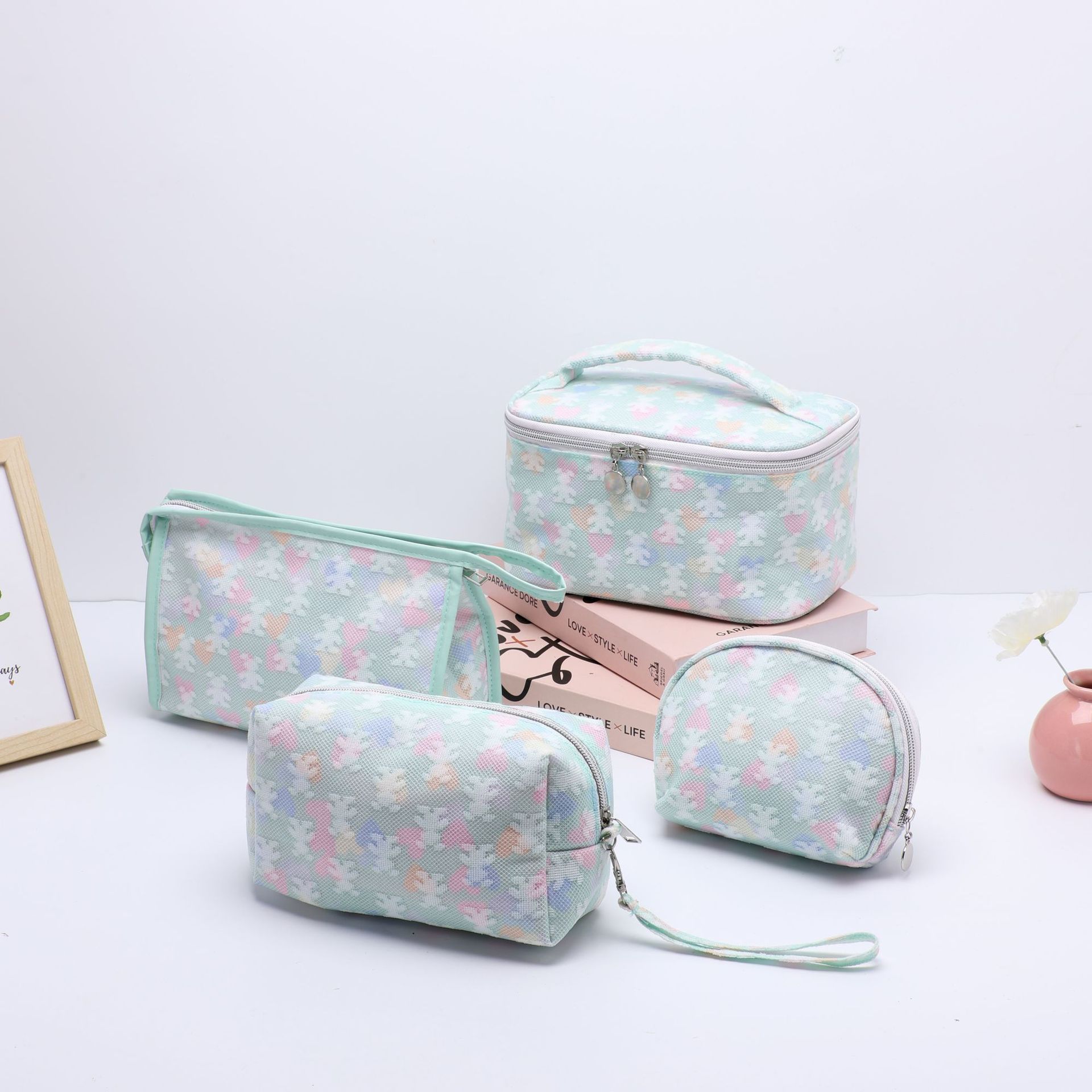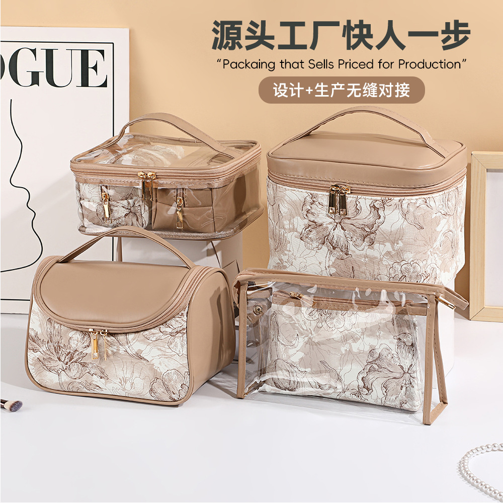 2025 新しい女の子の見栄えの良い便利な化粧品バッグ外出収納袋大容量多機能プリントハンドバッグ