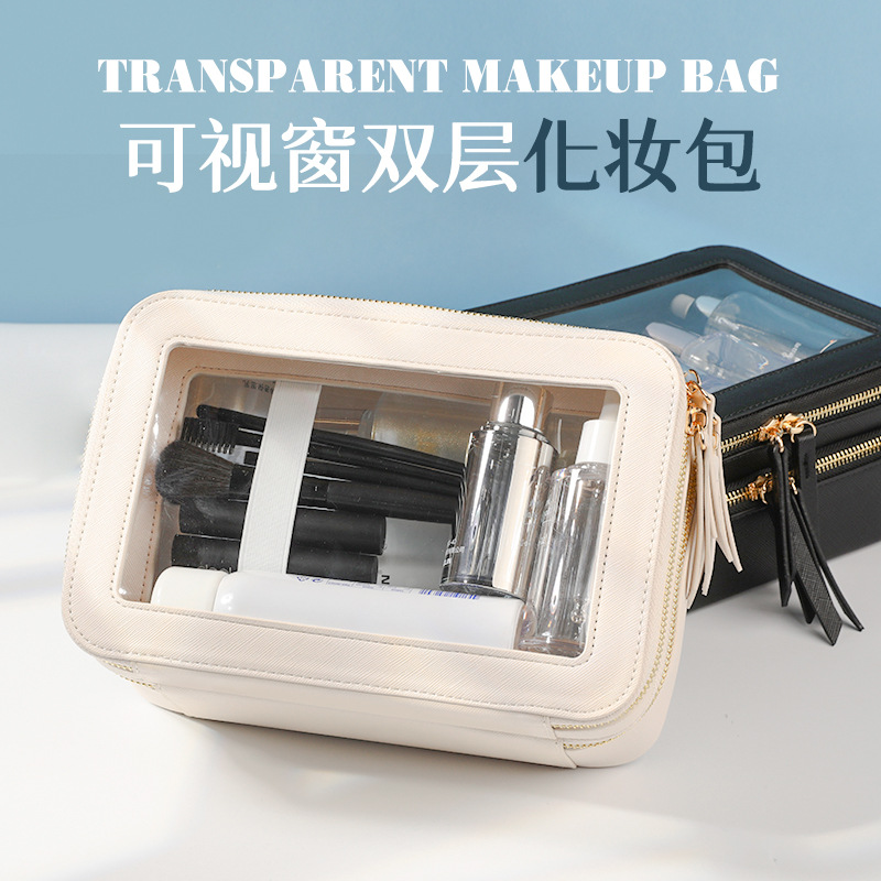 スポット新品レディース洗面ポーチ出張旅行防水収納大容量手提げpuダブル透明ポーチ