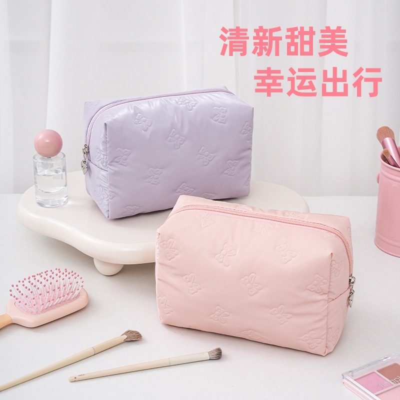 クロスボーダー純色化粧バッグ手提げ高颜値isn風ダウン洗面バッグ大容量携帯防水収納バッグ