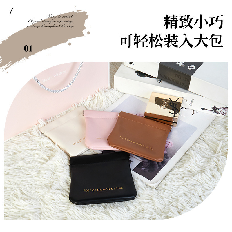 スプリングシート収納バッグ自動閉鎖有線イヤホン収納袋PU小銭入れミニ携帯口紅化粧バッグ