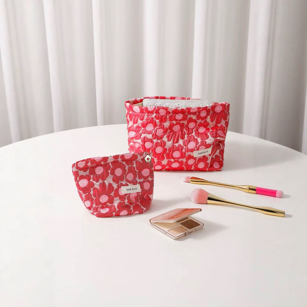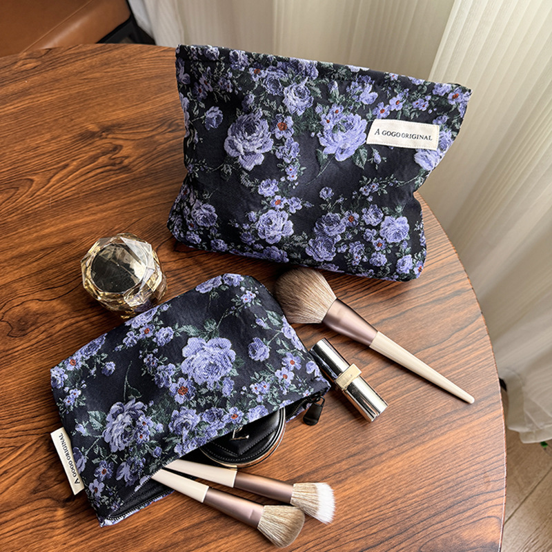 フラワー化粧品バッグポータブルスキンケア製品収納袋キャンバス小さなバッグライナーバッグトラベルトイレタリーバッグ財布