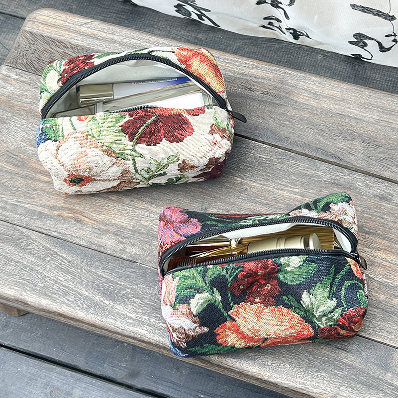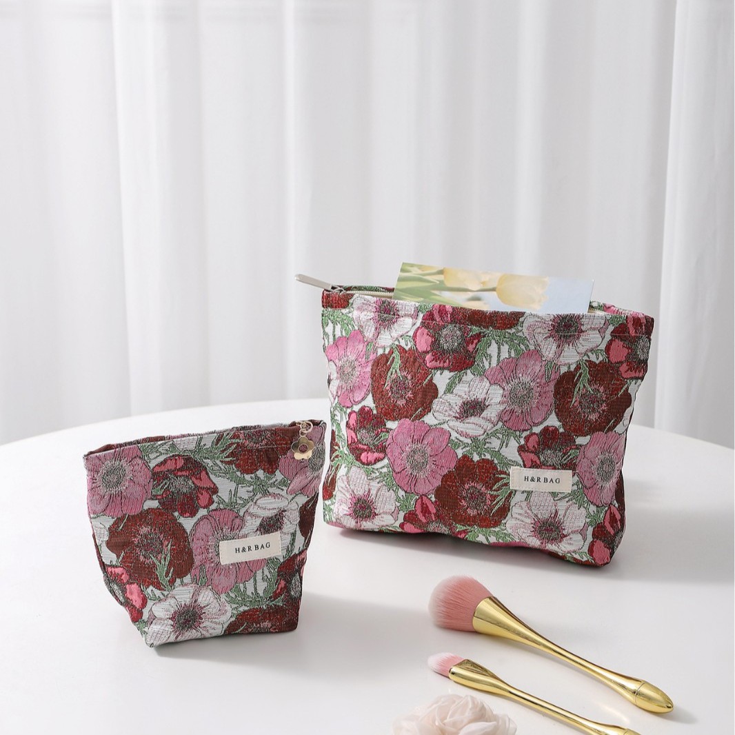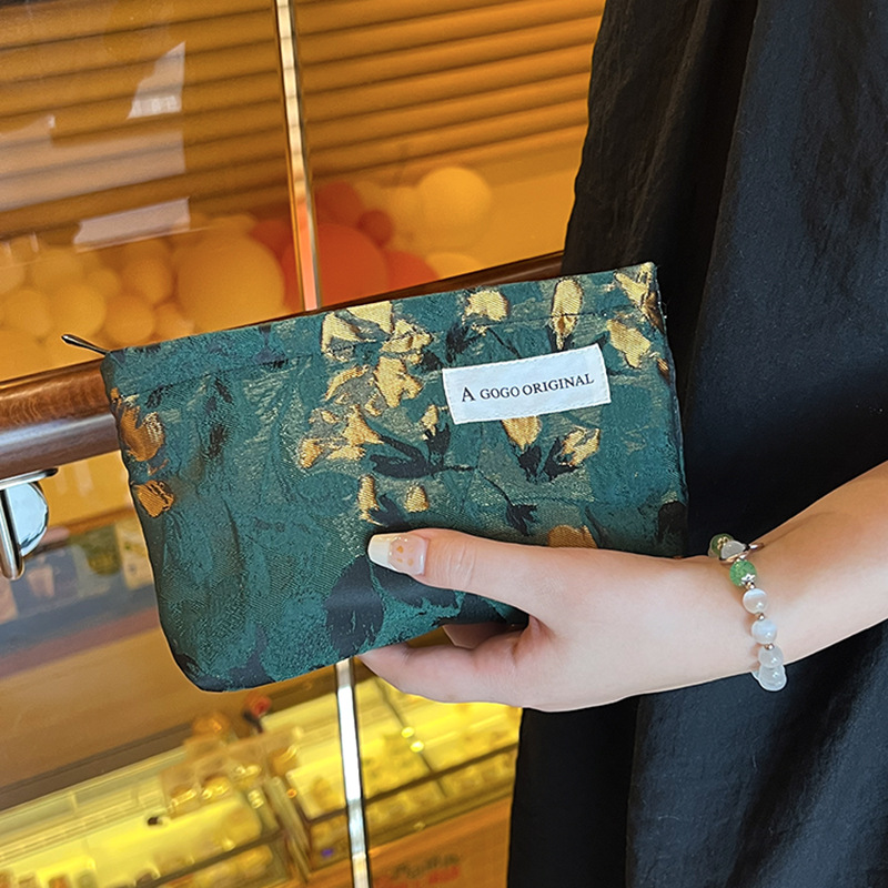 新商品の高級感文芸ジャカード化粧バッグ女性の花のハンドバッグ高颜値携帯収納バッグ小銭入れ
