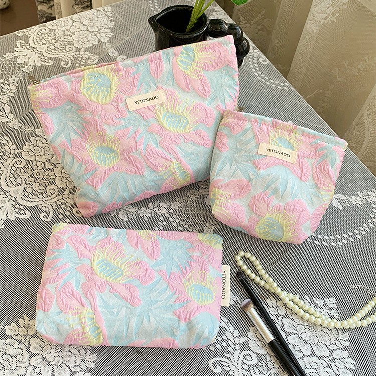 新しいスタイルのレリーフフラワー化粧品バッグ女性のポータブルクラッチバッグ旅行整理収納袋ライナーバッグ小銭入れ