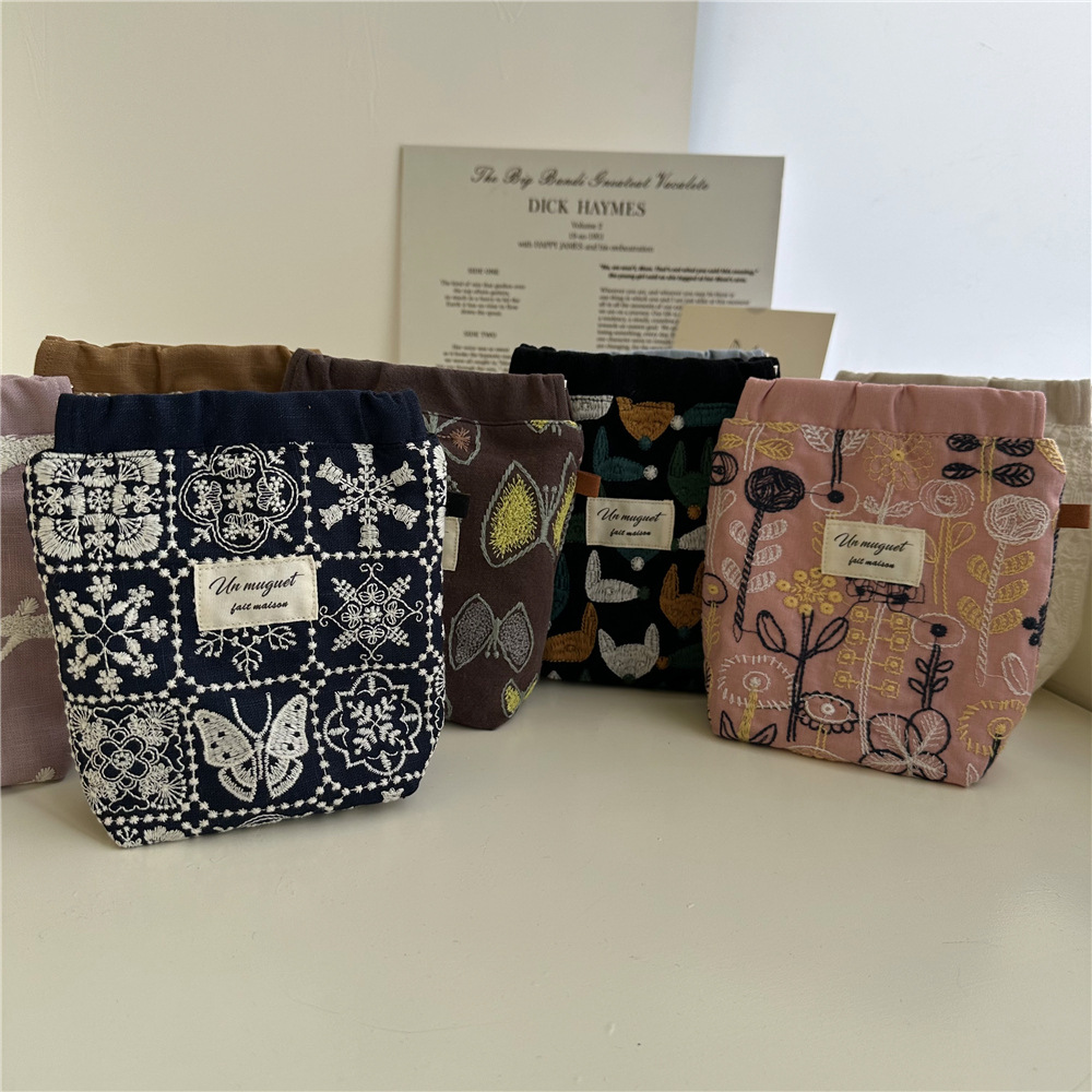 刺繍綿麻布芸手つまみバッグ化粧品収納袋口金バッグ口紅小銭鍵収納バッグ