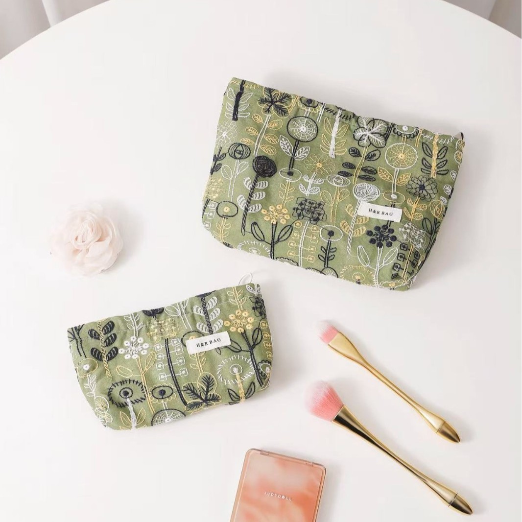 新型清新文芸綿麻刺繍花化粧袋高颜値大容量携帯収納バッグ小銭入れ