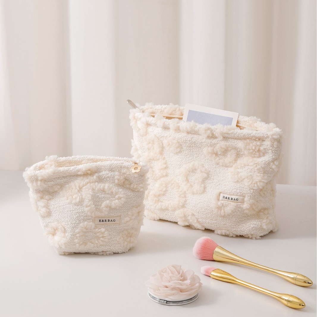 韓国スクエア化粧品バッグかわいいぬいぐるみ小銭入れ無地シンプルなポータブルトイレタリー収納袋口紅バッグ