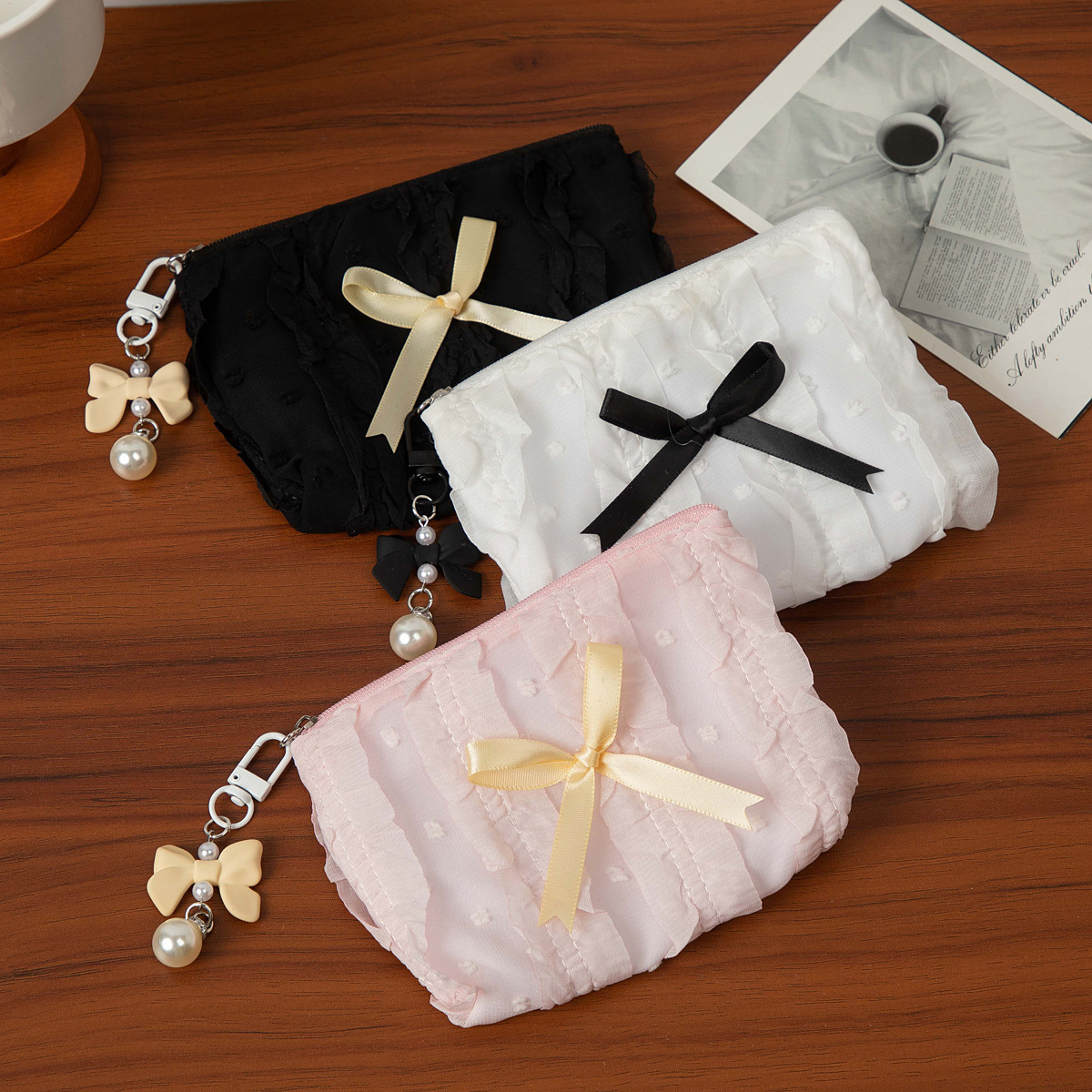 新品蝶結びキルティング口紅収納バッグレディース化粧品収納バッグイヤホンケーブルポーチ財布