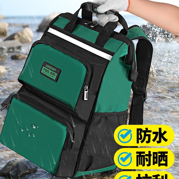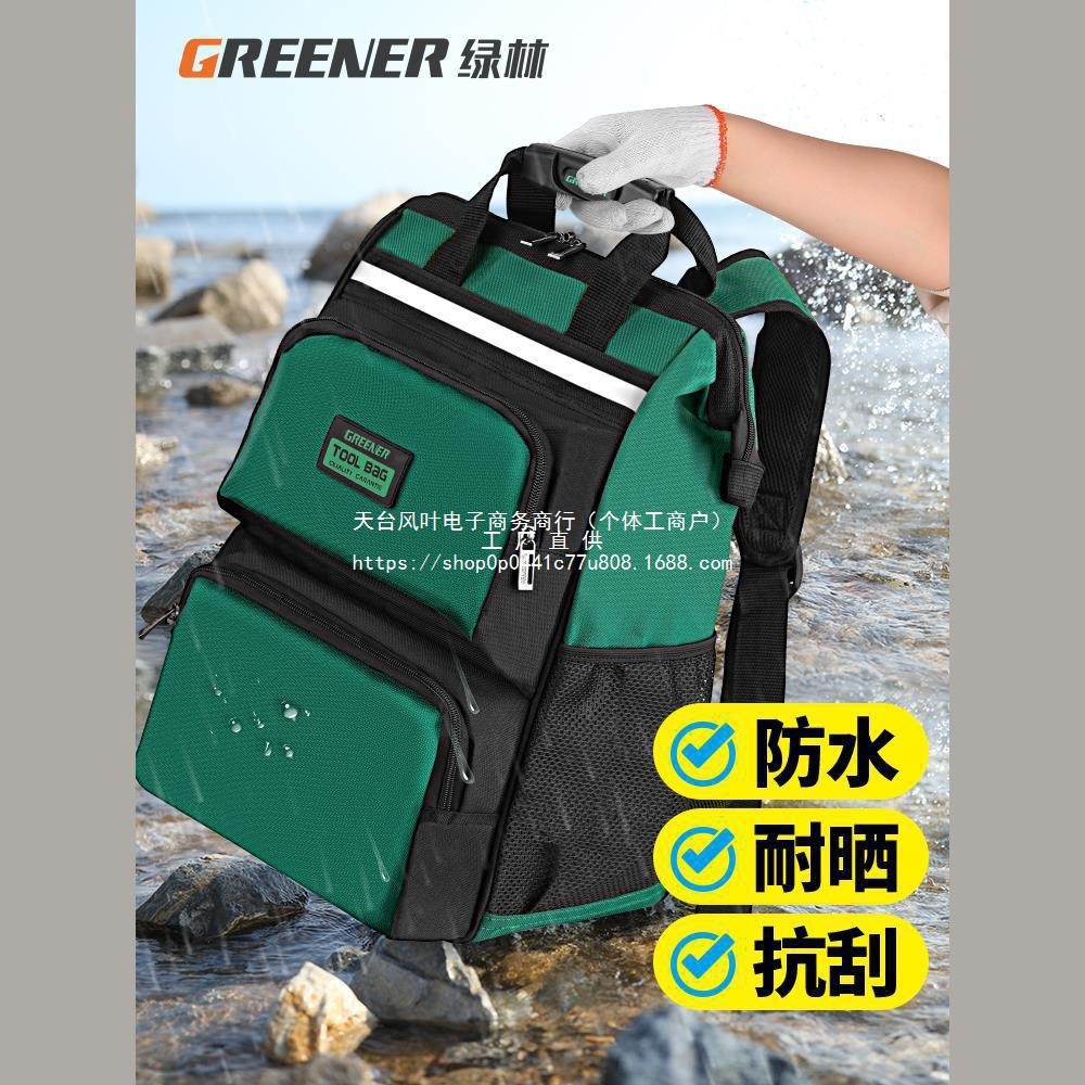 グリーンフォレストショルダーツールバックパック、強力で耐久性のある電気技師専用ハードウェアバックパックメンテナンス弱電流大容量収納男性用