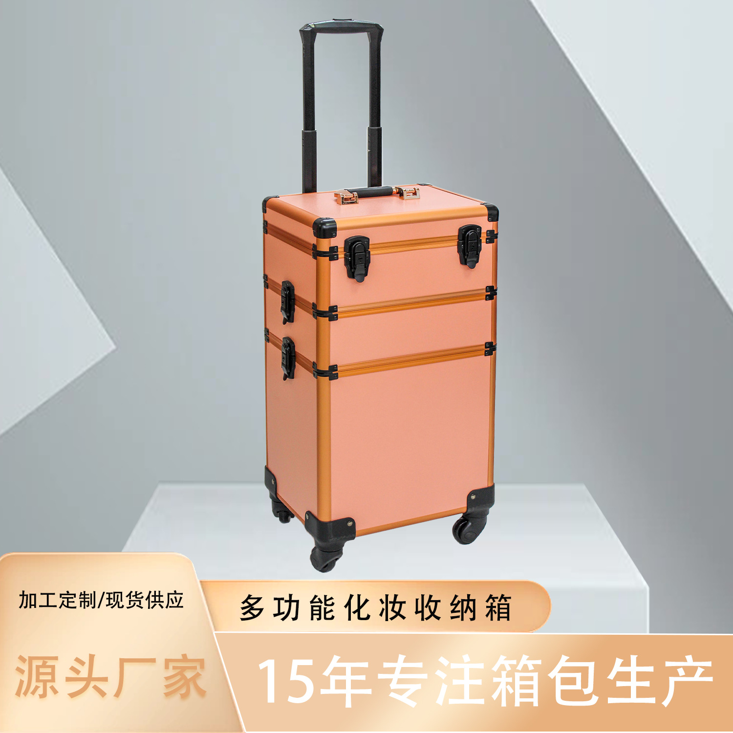 大容量美化粧道具箱タイロッド多層は化粧箱万向輪紋刺繍道具箱を収納することができる