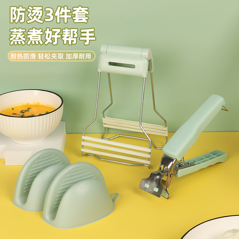 新しい三点セットの台所のパーマ防止は碗器のステンレスのシリカゲルの皿の家庭用蒸し物を取り出して滑り止めの神器を挟みます。