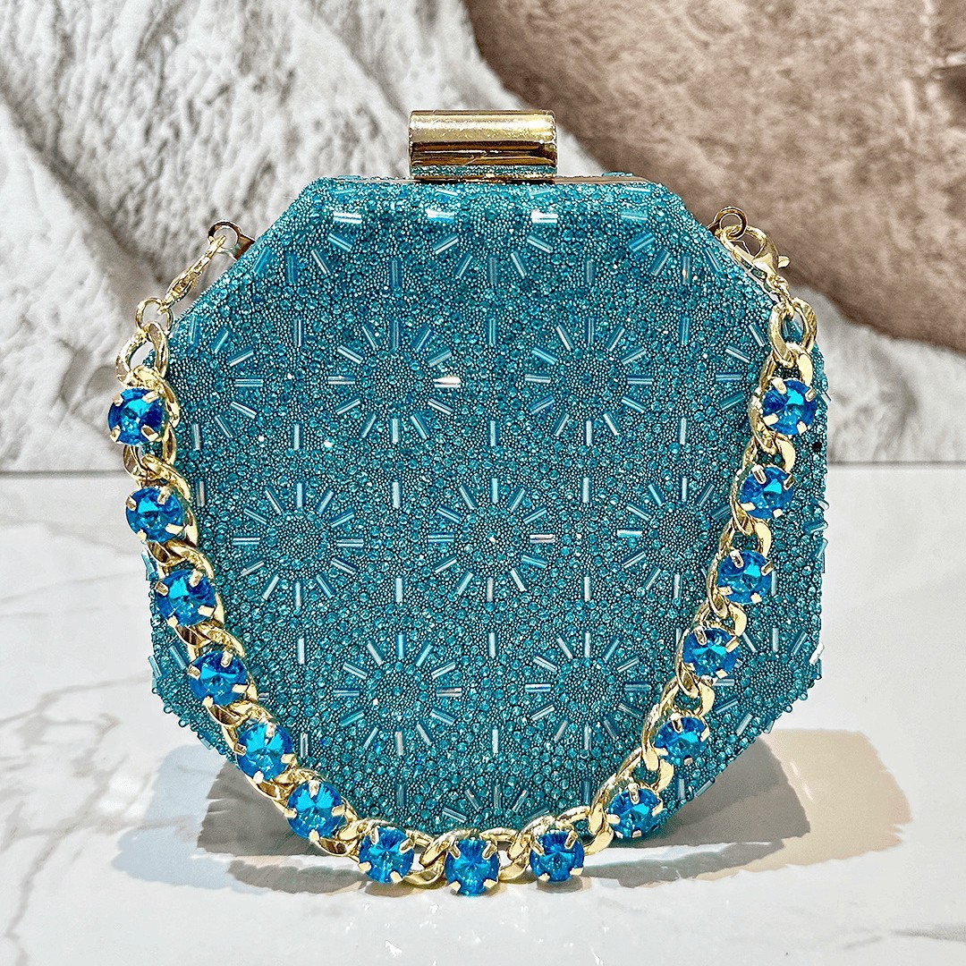 クロスボーダー高級ホットダイヤモンド装飾ブルーイブニングバッグ女性のパーソナライズされたミニハンドバッグチェーンバッグイブニングバッグ卸売