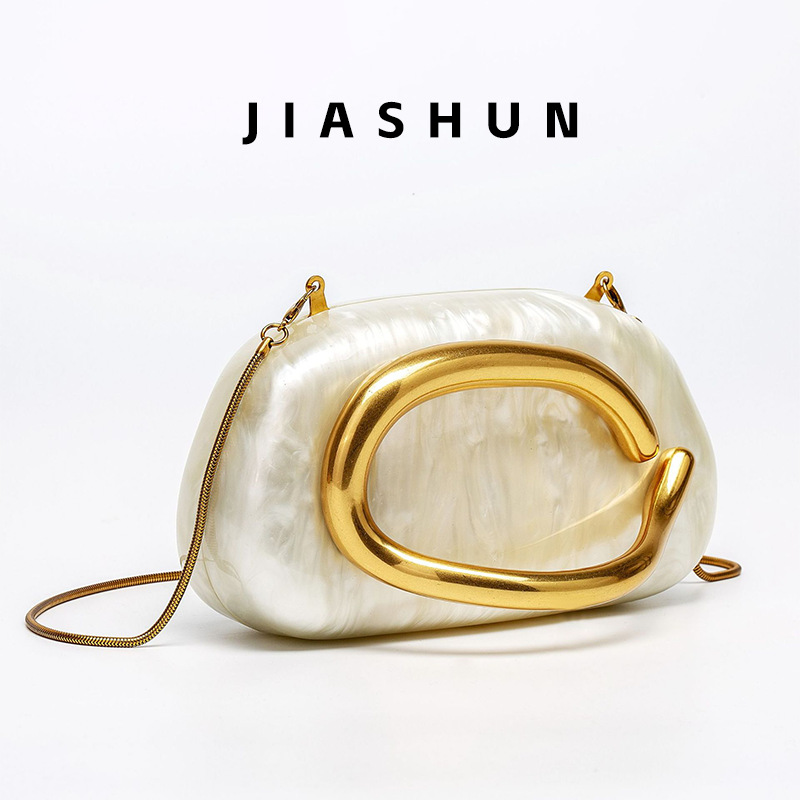 2024秋のファッション結婚バッグ欧米風アクリル亮面ディナーバッグのフォアグラ型ショルダーバッグの個性が斜めです。