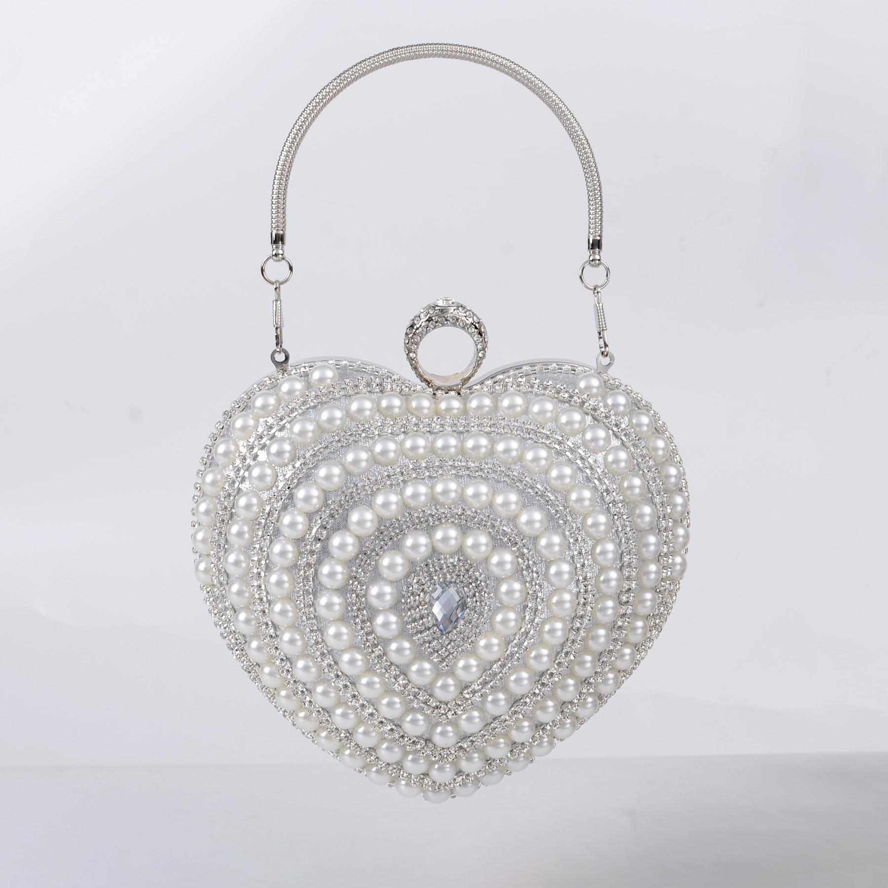 新しいレディースパールラインストーンバックルファッションハート型イブニングバッグディナーパーティー結婚式パーティークラッチバッグ取り外し可能