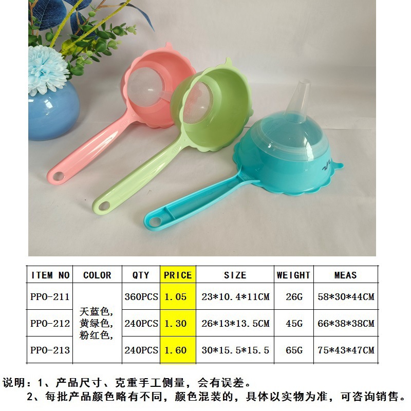 外国貿易の3点セットのプラスチックネットの篩漏斗は小麦粉の篩を持って、焙煎用具のPPO-211を卸売りします。