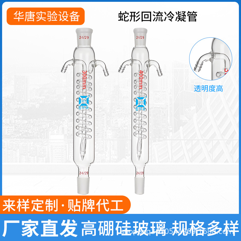 ガラス直形蛇形球形凝縮管高ホウ素シリコン蒸留凝縮器200/250/300/400/1801