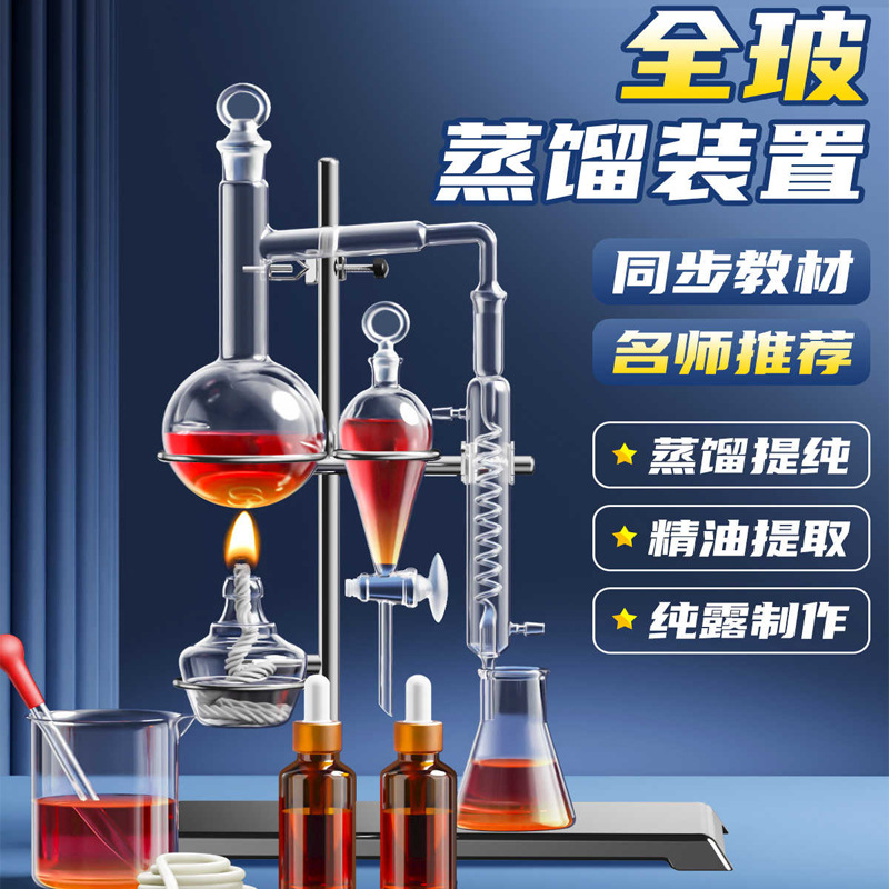 ガラス蒸留抽出装置 ハイドロゾルエッセンシャルオイル精製装置 化学実験装置 スネーク型凝縮管蒸留瓶