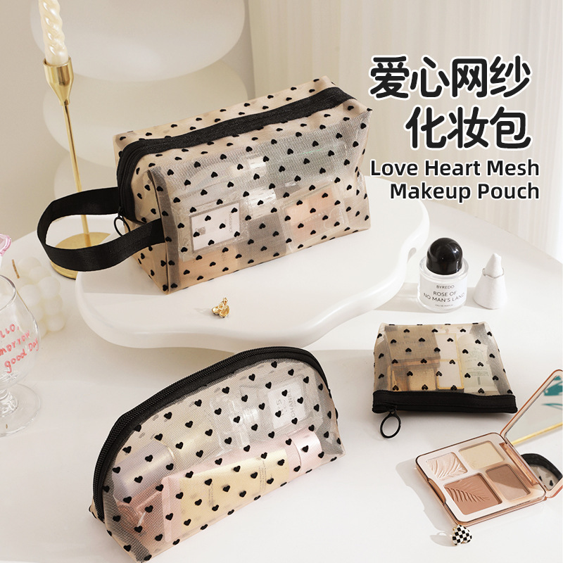 新しい愛の化粧バッグは大容量のネットを持っています。