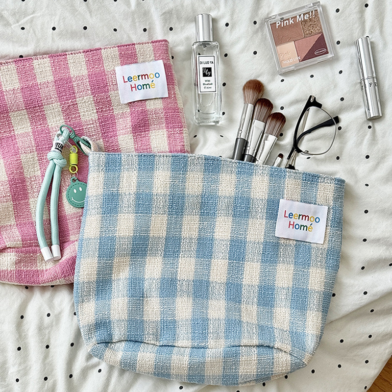 韓国の新鮮な化粧品バッグチェック柄の収納と整理バッグ多用途学生外出洗浄化粧品収納クラッチバッグ