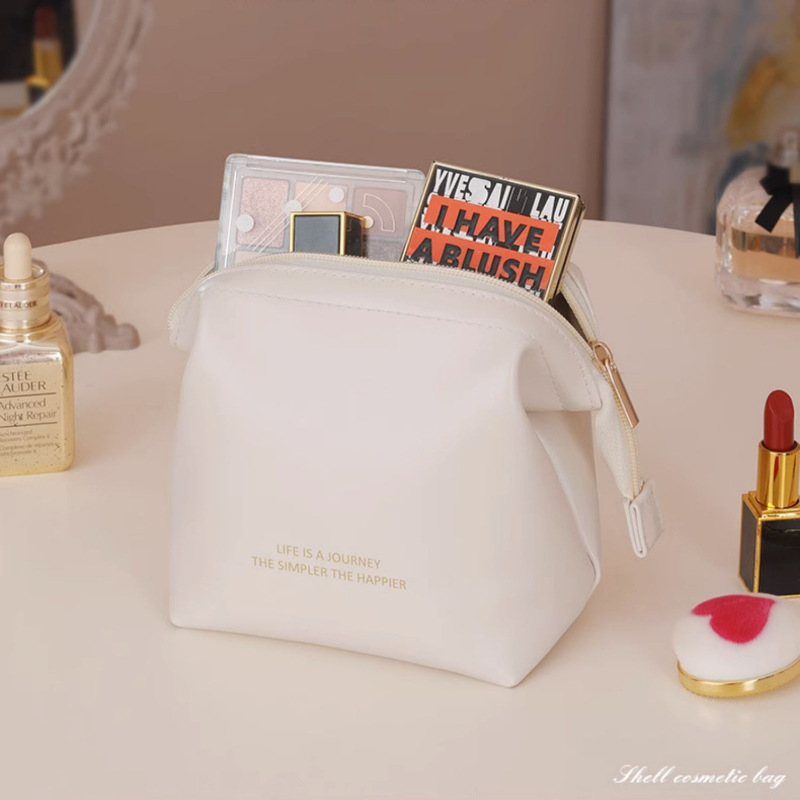 洗面化粧バッグカスタムロゴ防水口紅精油小銭収納バッグpu革箔押し貝殻ハンドバッグ