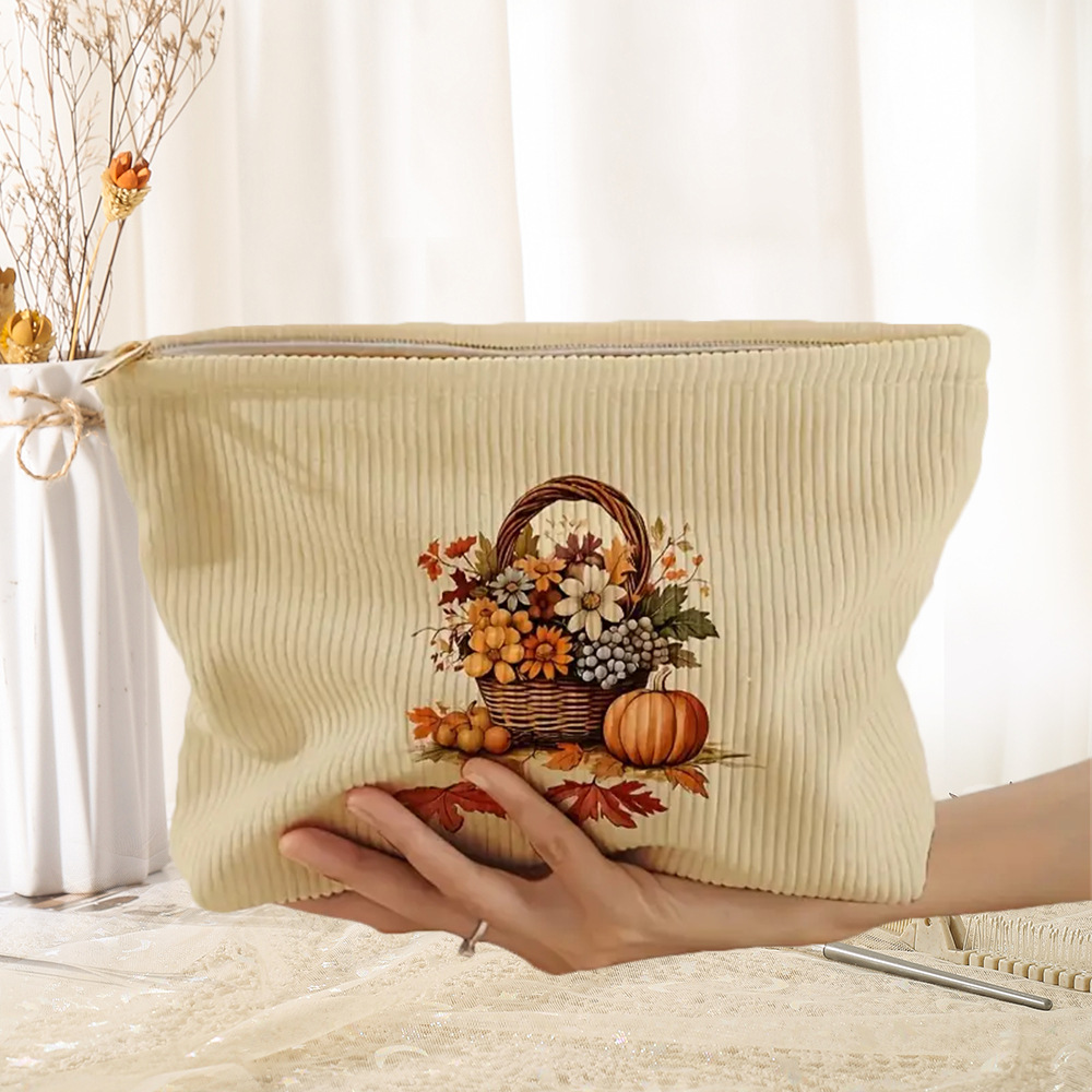 国境を越えたレトロなカボチャの花化粧バッグプリントコーデュロイ立体大容量収納バッグ多機能ハンドバッグ