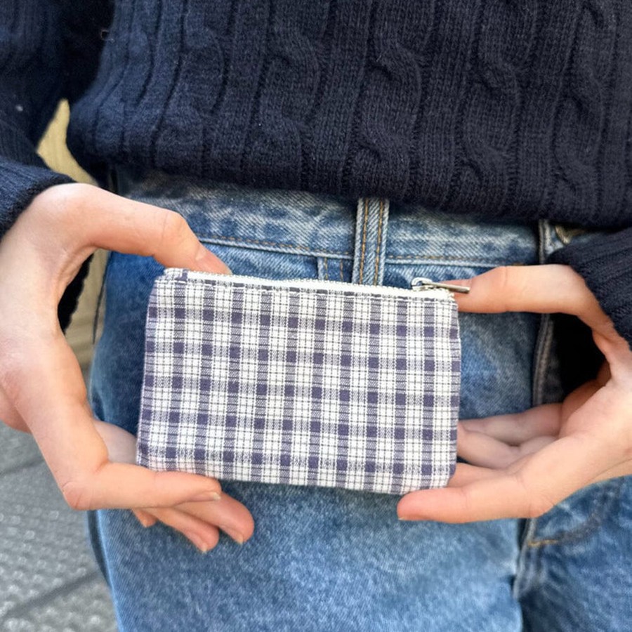 BM スタイル生地収納袋純綿手織りチェック柄ストライプキルティングクラッチバッグ収納化粧品袋
