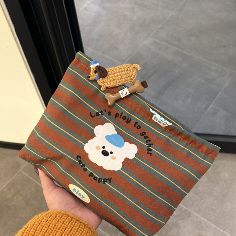 新しいストライプ子犬化粧品バッグポータブルクラッチバッグ大容量旅行出張雑貨収納袋トイレタリーバッグ