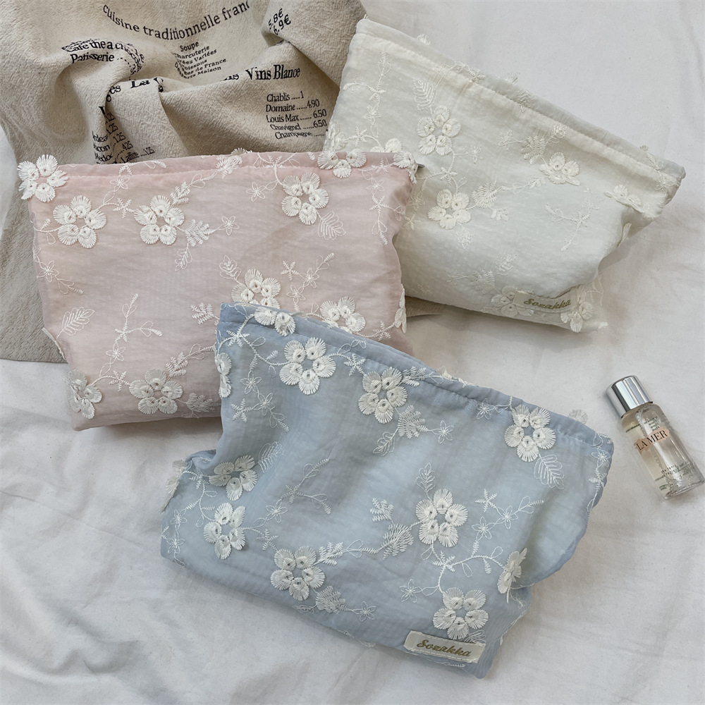 54204 ins エンボスフラワー化粧品袋大容量スキンケア収納袋女性のクラッチバッグジッパー収納袋