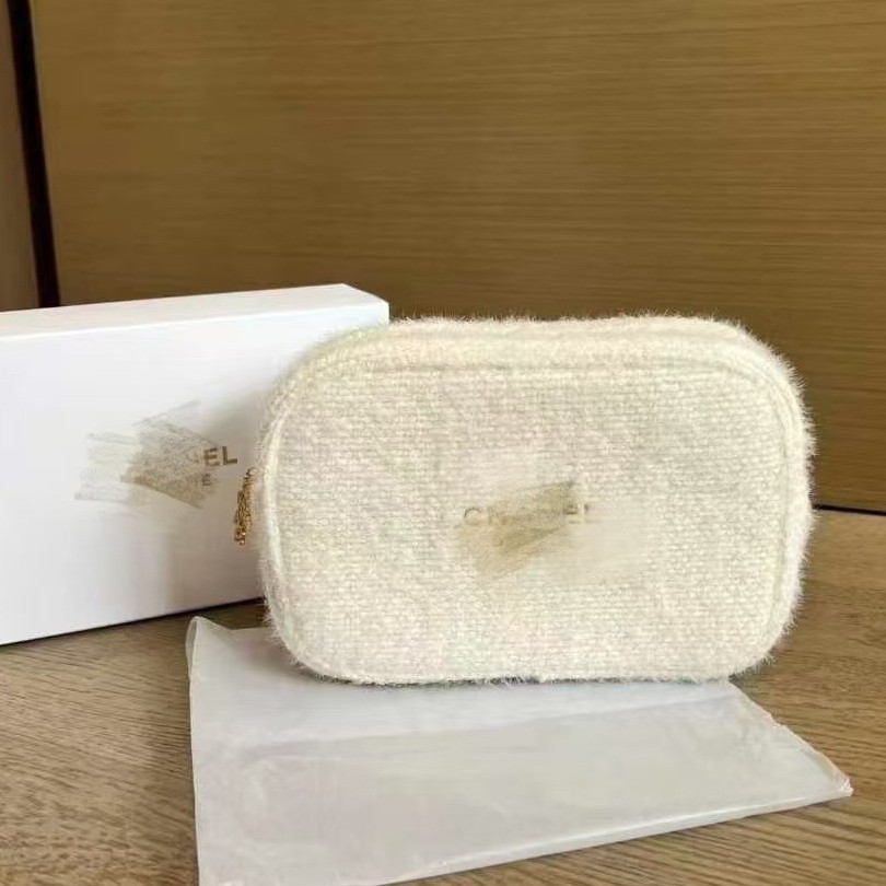シャネル2024限定ギフト ふわふわメイクポーチ スクエア型ハンドバッグ シャネルメイクポーチ