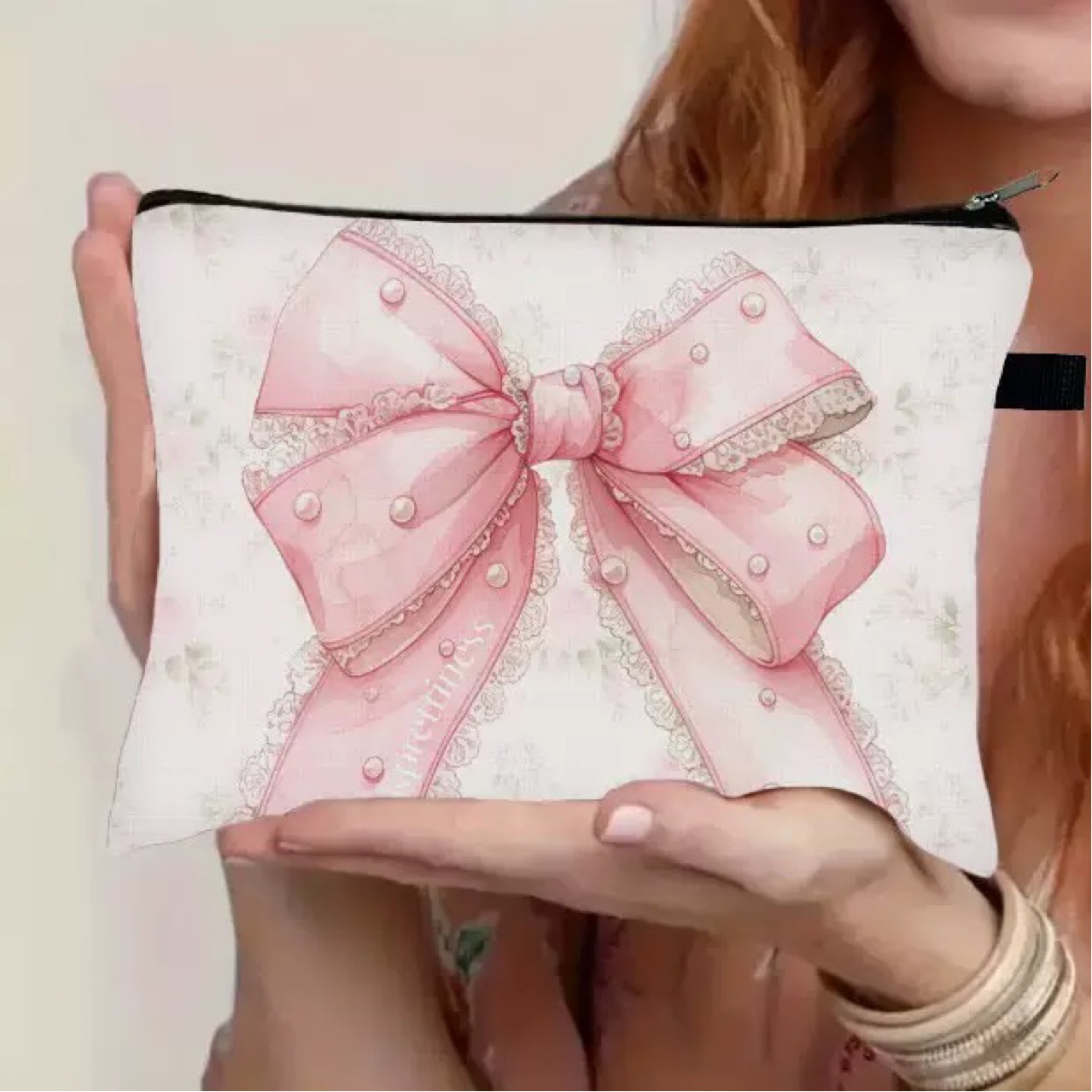 リネンピンクins蝶結びポーチ携帯化粧品口紅大容量収納花嫁お土産プレゼント
