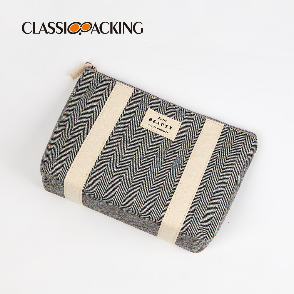 輸出収納バッグ携帯シンプルなハンドバッグ綿麻ストライプスプライスキャンバス化粧バッグ卸売りスポット工場