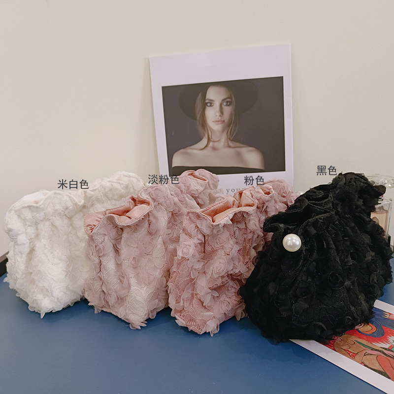 レースのハンドバッグ真珠のジッパーの小さい収納袋の携帯化粧品の収納袋の立体の花の化粧袋