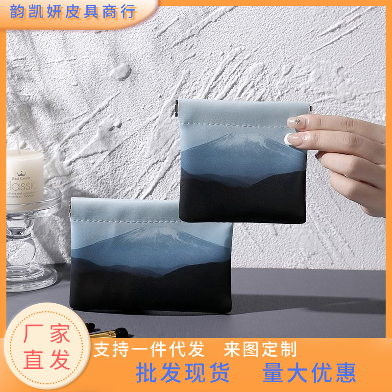 防水破片収納袋ポータブルファッション口紅バッグ小銭入れ自動開閉プリント化粧品袋