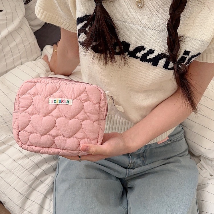 31294韓系小清新薄粉キルティングハンドバッグ小銭入れ収納袋大容量インナーバッグ女