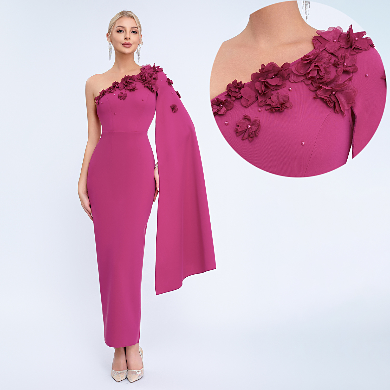 新しいスタイルの宴会用ウェディングドレス、ファッショナブルな斜め肩の立体的なドレス、社交界のパーティー用、不規則なウエストラインのイブニングドレス
