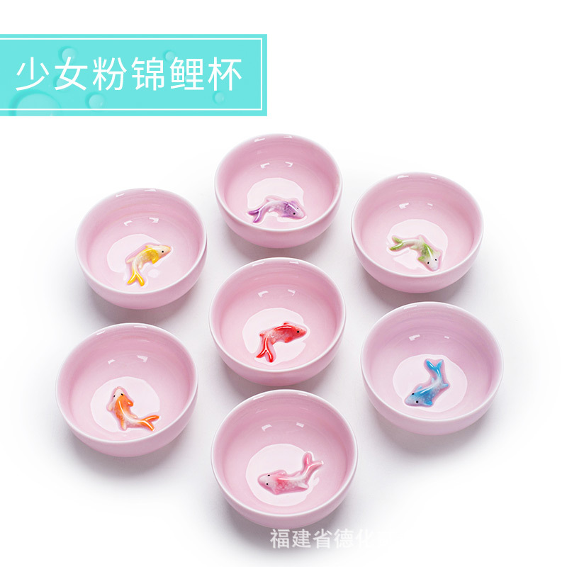 裂釉小茶杯、単杯小茶碗、紫砂陶器、功夫茶器、鯉魚杯、直送、ロゴ入り茶器