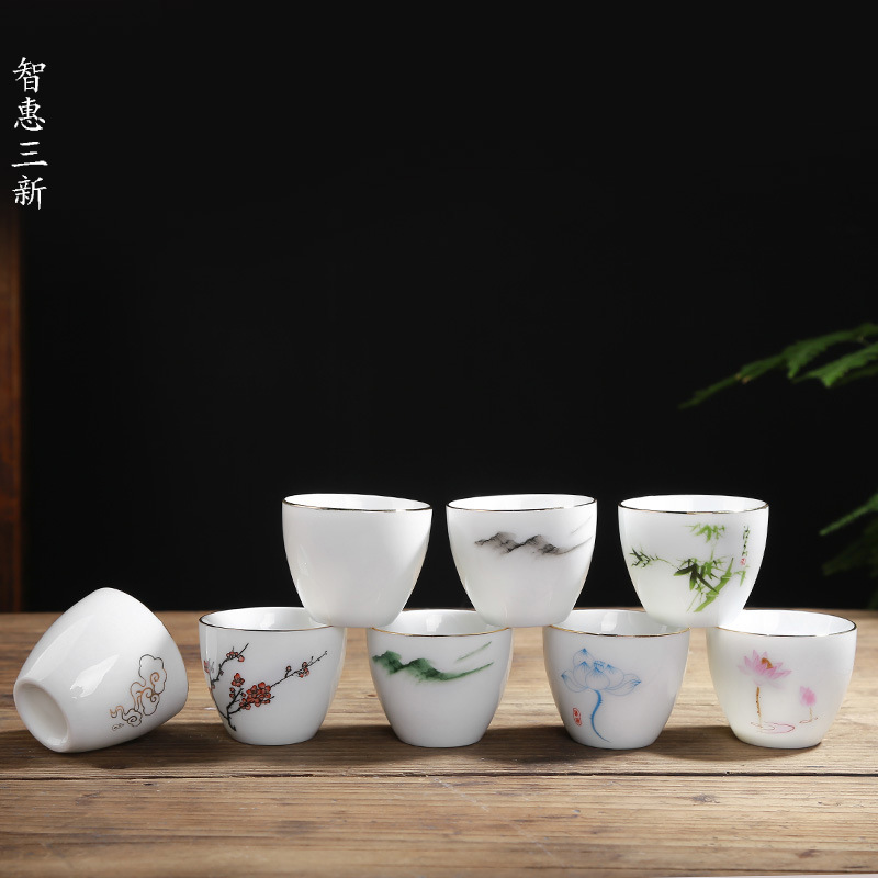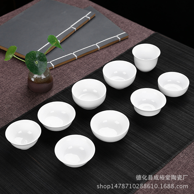 徳化羊脂玉白磁器品茗杯工夫陶磁器カップ小カップ主人カップ単杯茶碗印刷可能ロゴ