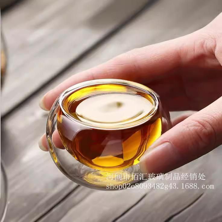 ガラス二重品茗杯カンフーカップ二重品カップ透明シームレス小品カップ個性カップ