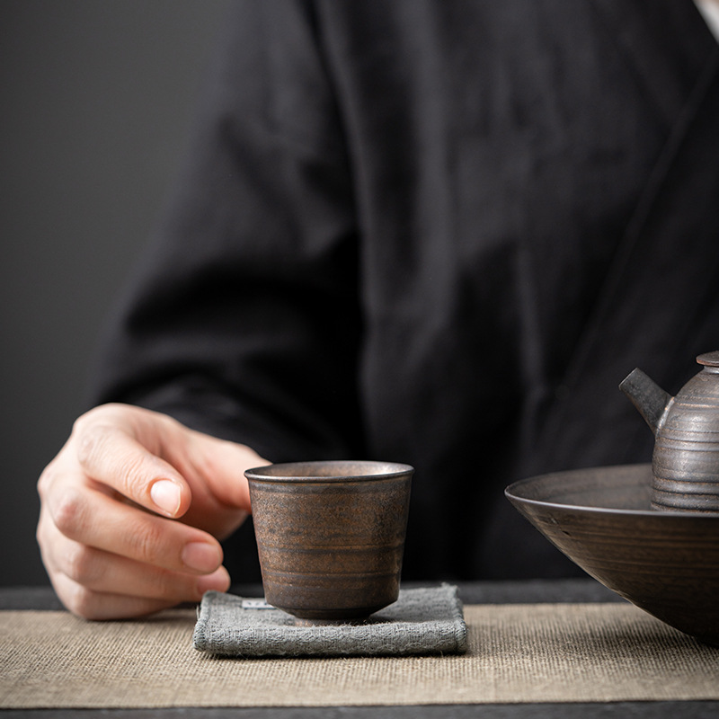 九匠風日本式粗陶品茗杯模造古鉄釉主杯陶磁器手作り茶具茶杯