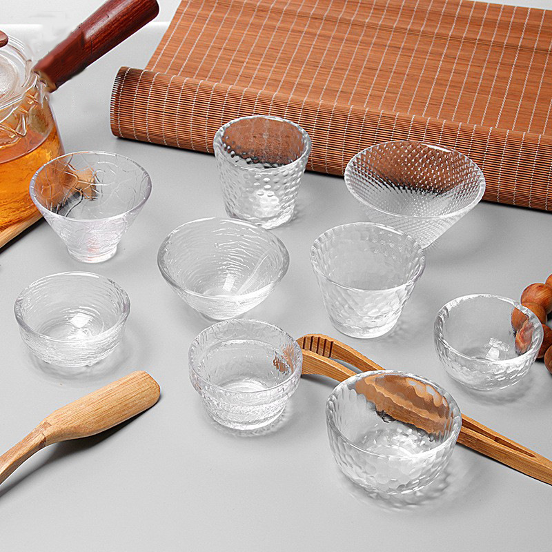卸売ガラス製茶杯、マスターカップ、透明な功夫茶杯、厚みのある小茶杯、小型カップ、高ホウケイ酸ガラス