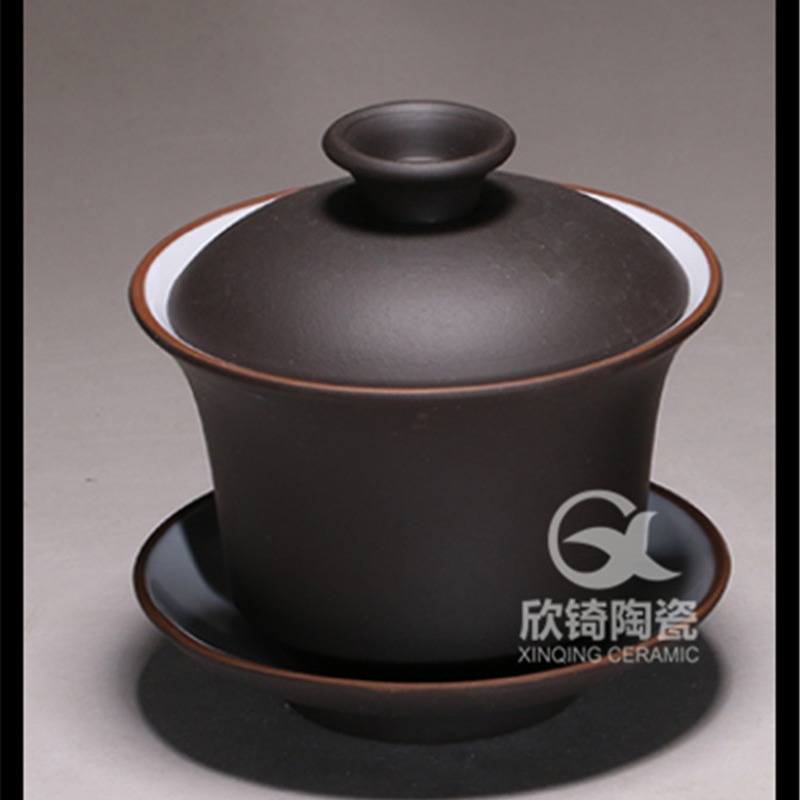 陶磁器紫砂茶道具紫砂蓋碗内釉白三才工夫茶器