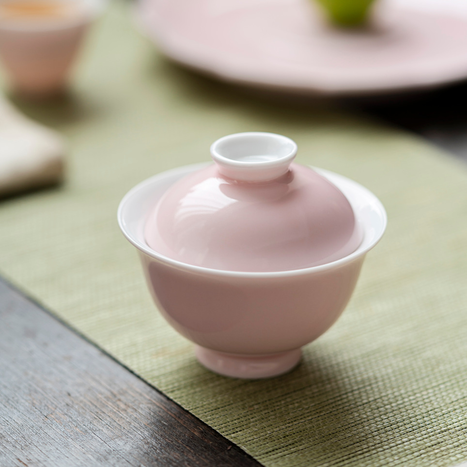 桜花粉陶磁器二才蓋碗泡茶杯二才家庭用一人茶碗純色系工夫茶具一個